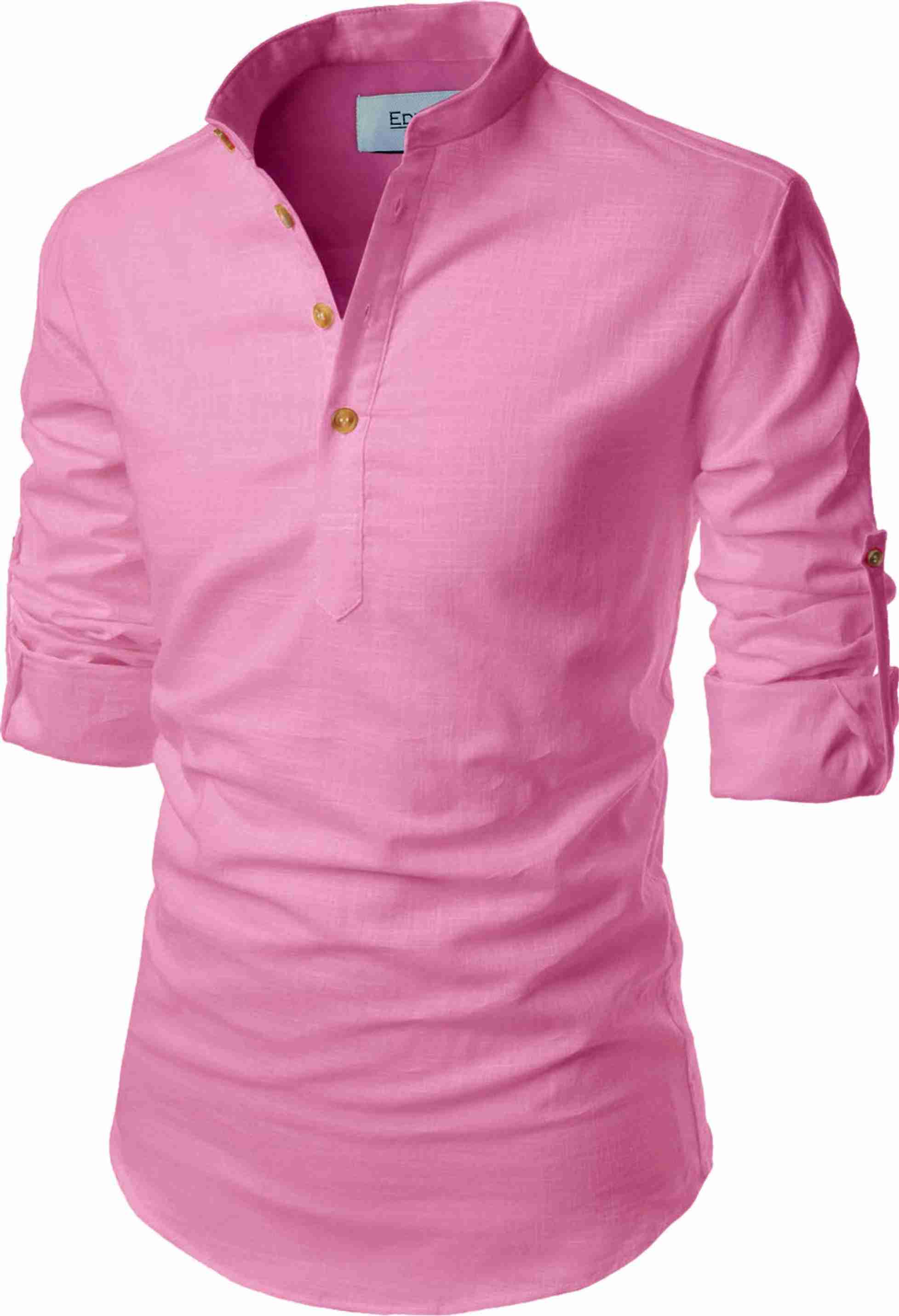 Men Solid Cotton Blend A-line Kurta (Pink)