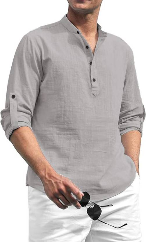 Men Solid Pure Cotton Straight Kurta (Grey)