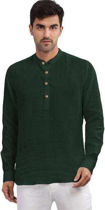 Men Solid Pure Cotton Straight Kurta (Beige)