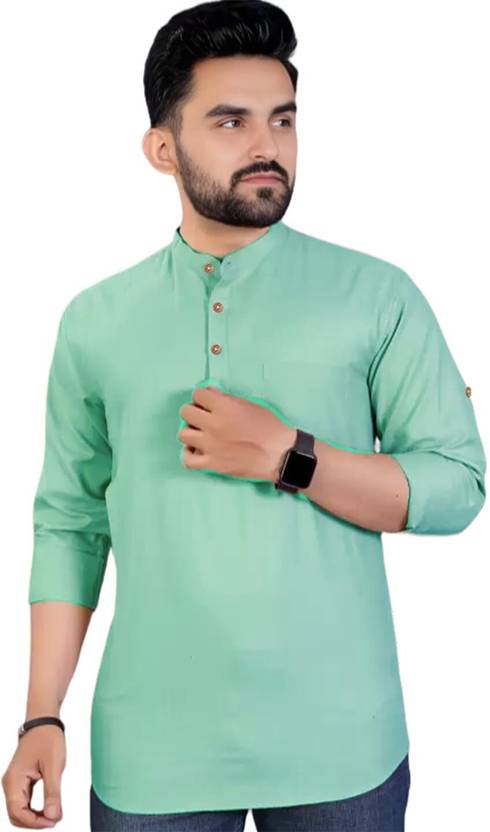 Men Solid Pure Cotton Straight Kurta (Beige)