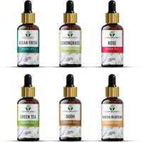 Gyan Organics Ocean Fresh, Black Oudh, Lemongrass, Rose, Green Tea, Nargis Blossom Aroma Oil, Automatic Spray, Diffuser, Diffuser Set, Refill, Spray Aroma Oil Ocean Fresh/Rose/Lemongrass/Black Oudh/Green Tea/Nargis Blossom Diffuser Refill Oil Aroma Oil Fragrance for Home Room Office & Washrooms (6 x 15 ml)