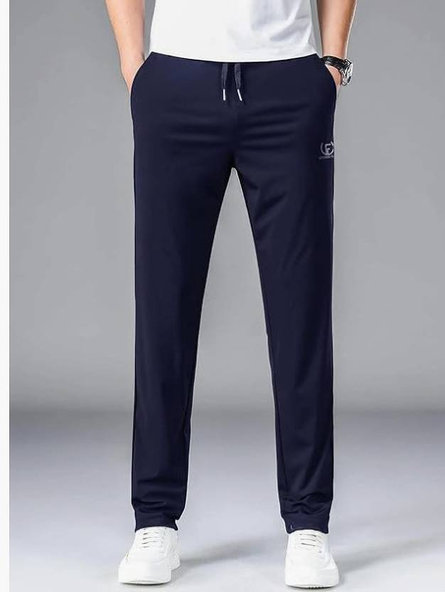 Men Slim Fit Blue Lycra Blend Trousers