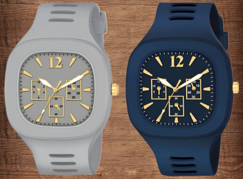 स्टाइलिश प्रीमियम क्वालिटी मेन वॉच स्क्वायर डायल रिस्ट स्पोर्ट्स वॉच विथ पैक ऑफ 2