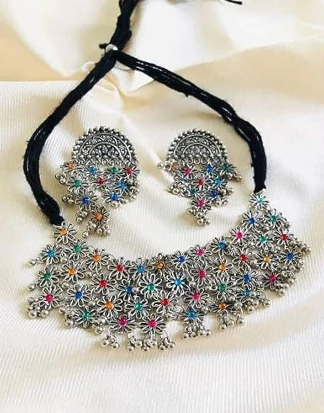 Coral 999 Silver Plated Oxidised Silver Necklace Set