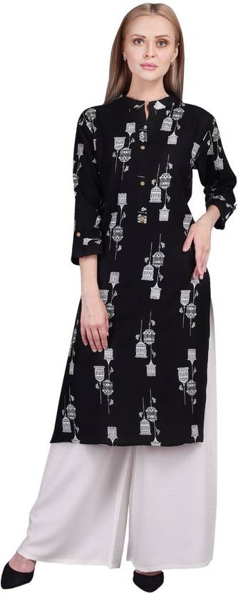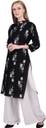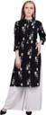 Women Floral Print, Printed Cotton Blend Straight Kurta (Black)
