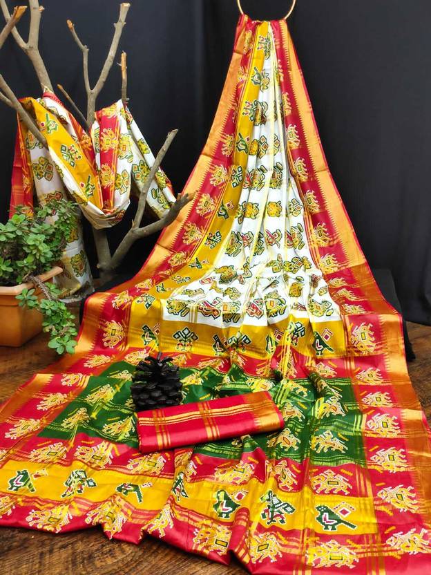 Self Design Patola Pure Cotton Saree (Multicolor)