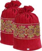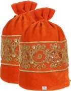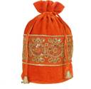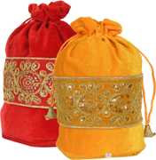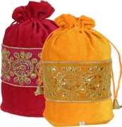 Package Contents: 2 Piece Velvet Potli Bag,Material: Velvet, Color: Orange & Red,Product Dimensions: 20cm x 24cm,Women's Potli Handbags are an essential item in the life of a modern woman. They are used today not just for carrying daily items but are also style statements. A form of self-expression and signal of personal style, handbags are also an entrée to luxury and glamour. This handbag is both fashionable and utilitarian - it's design goes beyond just style.,These Exquisite Pretty Pouches Are Great Storage For Coins,Dry Fruits, Chocolates, Shagun Items, Candles, Cosmetics, Key Rings, Potpourri, Jewellery,Also For Carrying Essentials While Travelling.,This design combines both convenience and style, to help keep you organized, fashionably! Enrich your look and style with this handbag. The luxurious look and feel of the material makes this handbag stand out in the crowd. It is best paired with your ethnic wear giving you a royal feeling.,Known for their convenience, drawstring closures also allow easy