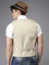 Beige printed waistcoat, has a V-neck, button closures, 3 welt pockets