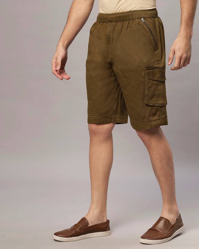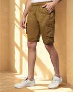 Ho Bindaass पुरुषों के लिए सॉलिड भूरा कार्गो शॉर्ट्स