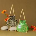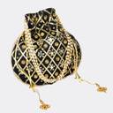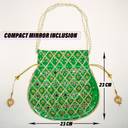 PACKAGE CONTAIN : 2 Piece Potli | Mirror Check-Design | Black-Green | MATERIAL : Silk | PRODUCT DIMENSION : 23 cm x 23 cm x 1 cm