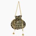 Introducing Homestric elegant Potli � Versatile and Stylish Accessory Designed to elevate your ensemble. Its exquisite design features intricate embellishments, adding a touch of traditional charm to its modern appeal. The easy drawstring closure ensures quick access while securely holding your essentials. Perfect for storing jewelry, cosmetics, or large keepsakes, this Potli is not just a fashion statement but a practical addition to your wardrobe. Whether attending weddings, festivals, or adding flair to everyday outfits, this Potli offers both convenience and timeless elegance.