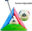 The 3x3 pyramid speed cube is the classic color-matching puzzle that's a great mental challenge at home or on the move. Turn and twist the sides of the cube so that each of the four faces only has one color suitable for beginner and professional player. Made of fine plastic material, buttery to use.