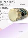 This particular model features a combination of materials for optimal performance and resilience. The main body is constructed from mango wood, known for its light weight and strength. Mango wood also enhances the acoustic properties of the instrument by providing a warm and deep resonance, which adds richness to the sound. The natural texture and finish of the wood give the dholak an appealing and rustic look.