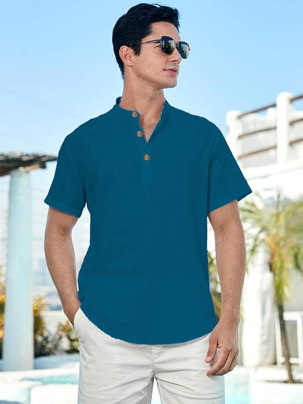 🌟 Elevate Your Style with Versatile Elegance! Introducing the Univibe Men's Cotton Blend Half Kurta Style Shirt Pack of 1 in a sophisticated solid pattern. The coupled with accent colors like Grey, Blue, Orange, and more, ensures a wardrobe essential for every occasion. 👔 Design & Fit: Pattern: Solid Color: Black with a spectrum of vibrant tones Closure: Button Weight: Lightweight Fabric: Crafted from Durable Luster Venture Cotton for a sleek finish Collar: Mandarin Collar Length & Sleeves: Regular length, Curved Hemline, and Half Sleeves 🌈 Versatile Style Options: Embrace the possibilities! Pair these kurtas with denim for casual flair or dress it up with tailored trousers for a refined look. The pack of 1 offers endless styling combinations. 🧼 Material & Care: Machine wash with like colors Cold water wash Dry in shade Tumble dry low Iron on the reverse side for lasting elegance 👖 How to Style: For a casual vibe, pair with denim and sneakers. Elevate the look with tailored trousers and loafers for a more polished appearance. The options are endless—express your style!