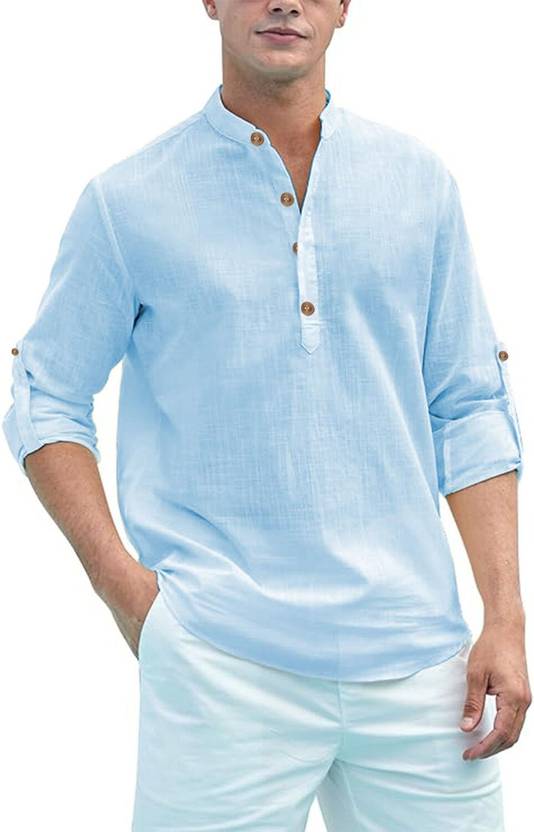 Men Solid Cotton Blend Straight Kurta (Light Blue)