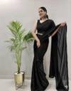 Solid/Plain Bollywood Lycra Blend Saree (Black)