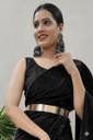 HouseOfCommon Solid/Plain Bollywood Lycra Blend Saree (Black)