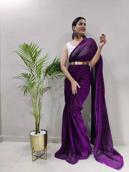 HouseOfCommon Solid/Plain Bollywood Lycra Saree (Purple)