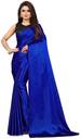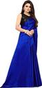 PCDESIGNER सॉलिड/प्लेन बॉलीवुड साटन साड़ी (नीला)