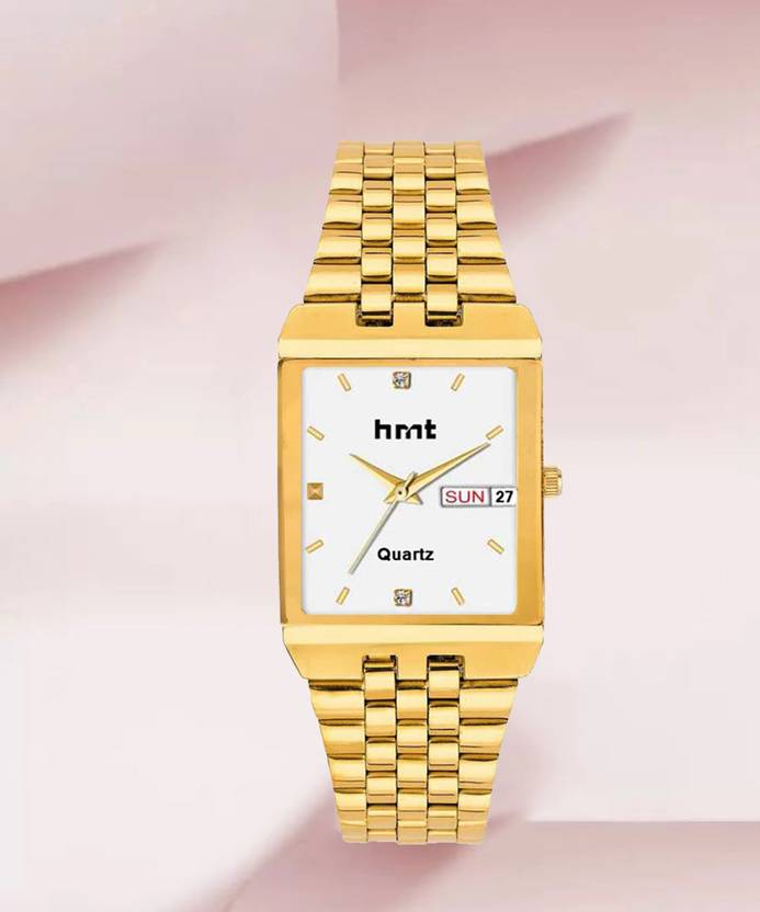 hrnt Premium Original Golden Day & Date Chain Watch & HMTS-Wrist Watch,Golden Watch 9138-Golden Watches,Hands Watch,Mens Watches Golden Plated Day&Date Mens Watch एनालॉग घड़ी - पुरुषों के लिए