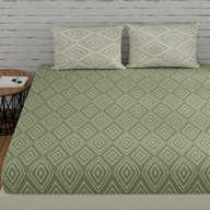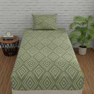 Huesland Cotton Single Flat 144 TC Geometric Bedsheet (Pack of 1, Sage Green & White)