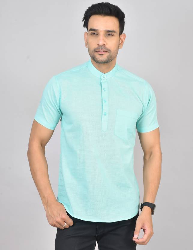 Elevate your casual wardrobe with this sophisticated short kurta in a refreshing light mint green shade. Crafted from a comfortable cotton blend fabric, this half-sleeve kurta combines traditional styling with contemporary comfort. The versatile design features a classic mandarin collar with button placket, making it perfect for both casual outings and semi-formal occasions. The half-sleeve design offers excellent comfort in warm weather, while the relaxed fit ensures unrestricted movement throughout the day. This kurta can be effortlessly paired with your favourite jeans or traditional bottoms for a distinctive look. The light mint green colour adds a fresh, modern touch to your ensemble while maintaining the timeless appeal of traditional Indian menswear. Perfect for summer gatherings, festive celebrations, or casual weekend wear. The cotton blend material ensures breathability and ease of maintenance. Please refer to the size chart to ensure the perfect fit for your comfort.