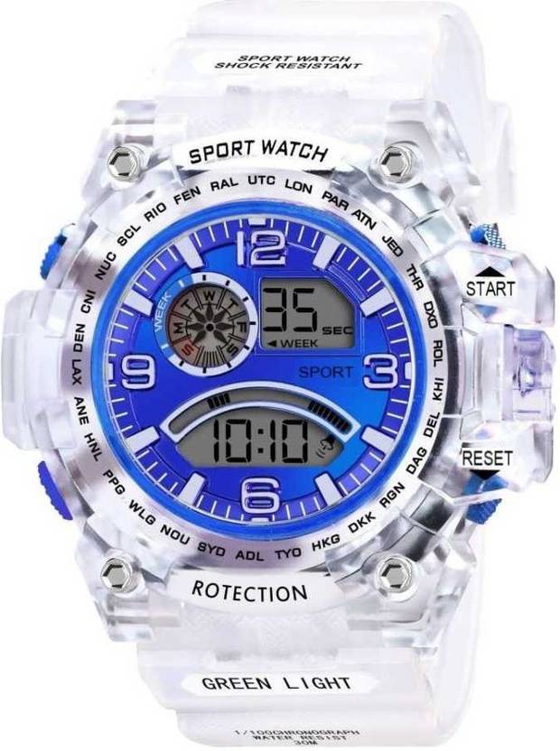 Digital Watch - For Men H2K-059 White Sports Multi Functional Water Resistant