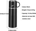 Vacuum Insulated Flask set 3Cup set for Hot & Cold Drink BPA Free(Giftset Black)