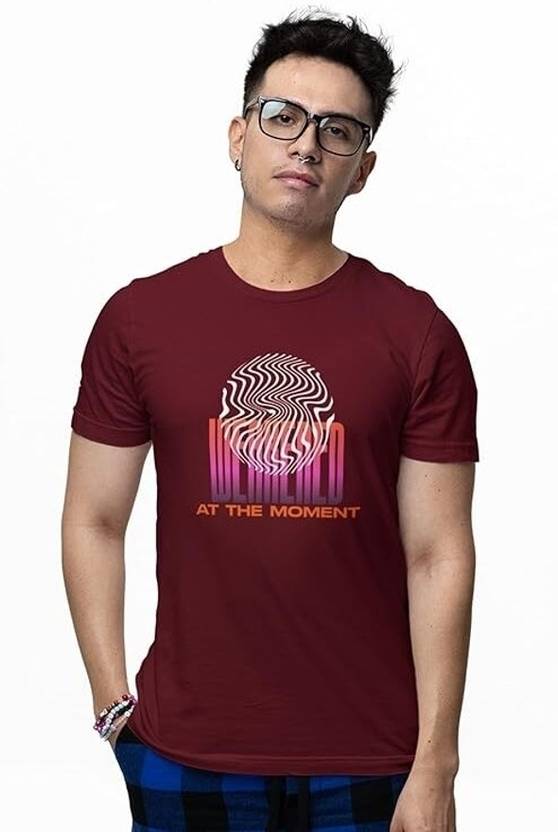 Add a pop of color to your casual wardrobe with this Men's Printed Round Neck T-Shirt in rich Maroon. Crafted from 100% pure cotton, this t-shirt offers a soft, breathable, and comfortable feel, making it perfect for all-day wear. Featuring a unique and stylish printed design on the front, it combines a modern aesthetic with a classic t-shirt silhouette. The round neck and short sleeves offer a relaxed fit, ideal for pairing with jeans, chinos, or shorts for a laid-back yet fashionable look. Whether you're hanging out with friends, enjoying a weekend getaway, or just relaxing at home, this maroon t-shirt is a versatile and trendy addition to your wardrobe.