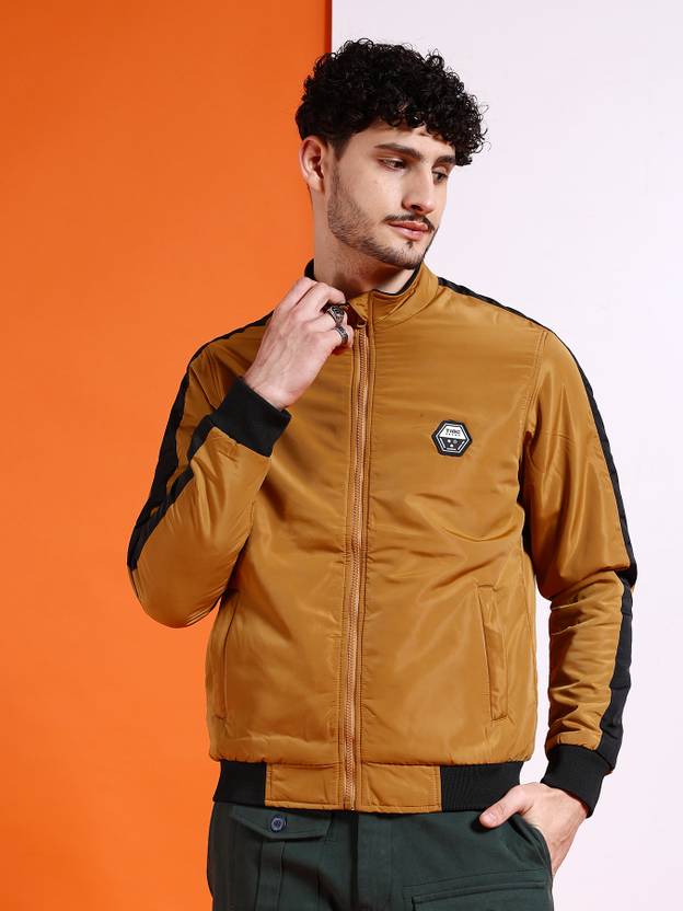 The Indian Garage Co Men Mustard Regular Fit Colourblocked Bomber Jacket