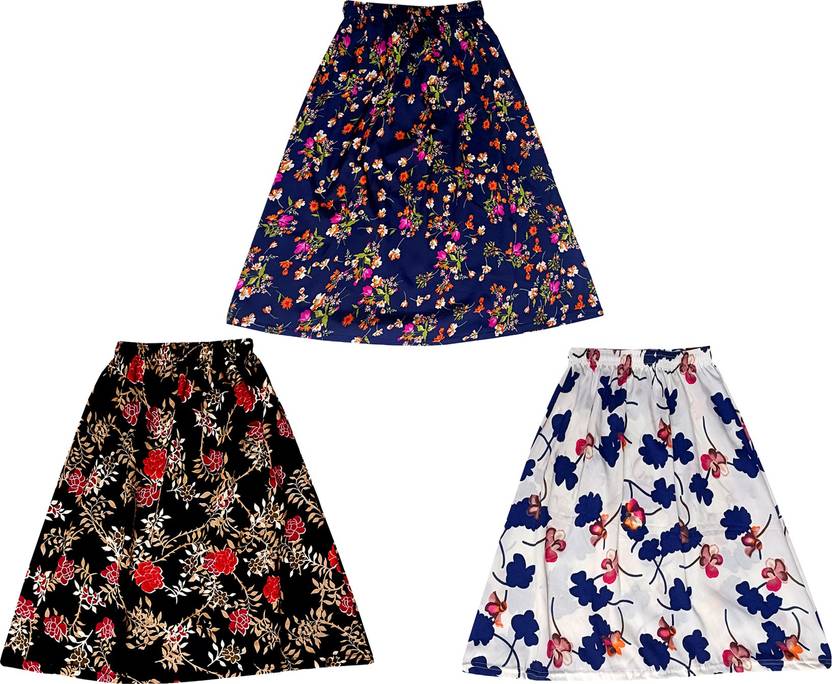 Girls Floral Print A-line White, Dark Blue, Black Skirt