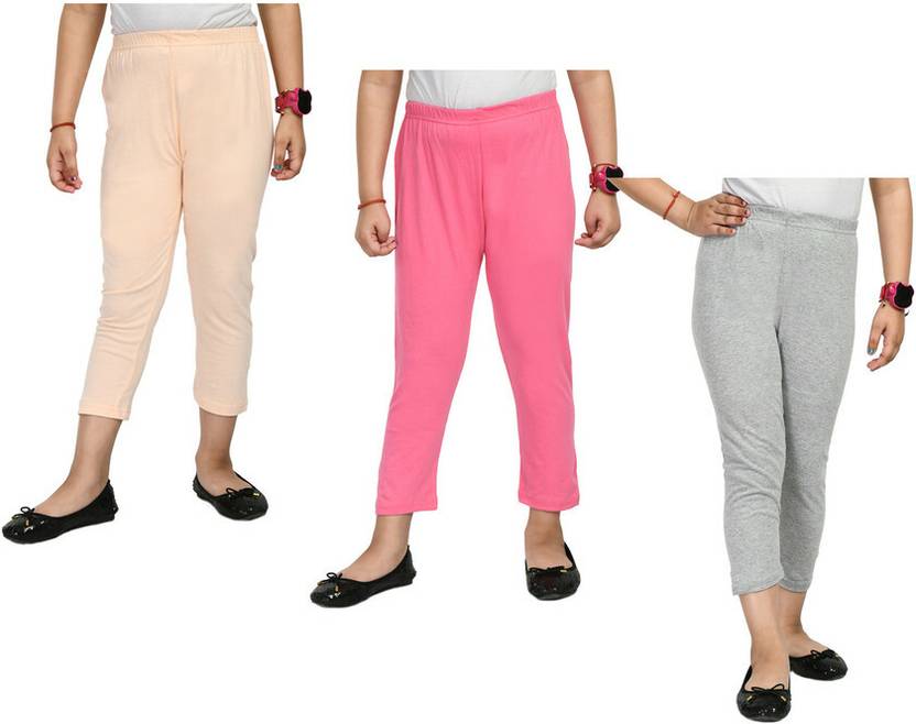 Capri For Girls Casual Solid Pure Cotton (Multicolor Pack of 3)