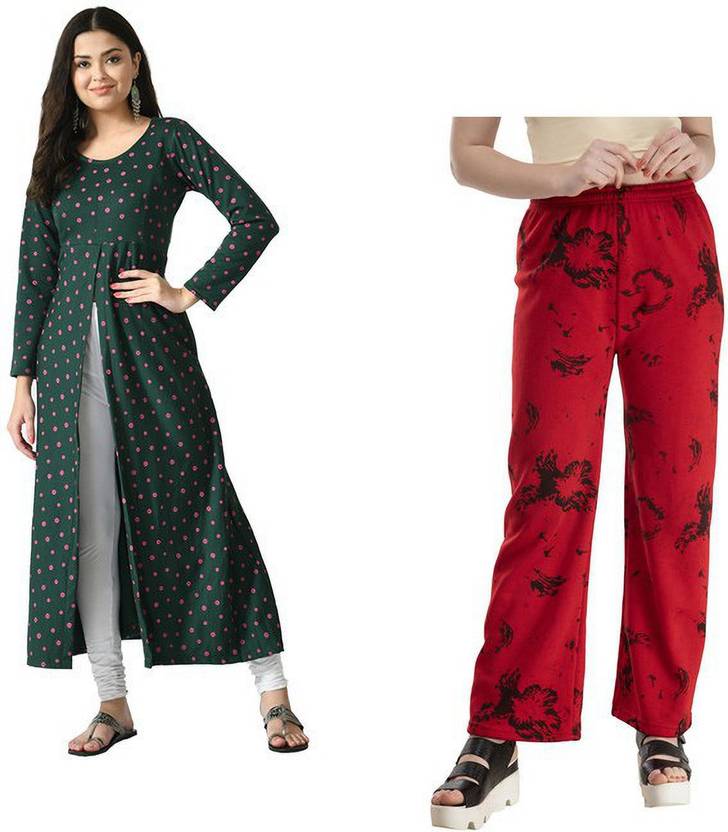 Women Printed Fleece warm Dress and Wool Printed Palazzo for Winter