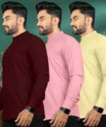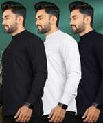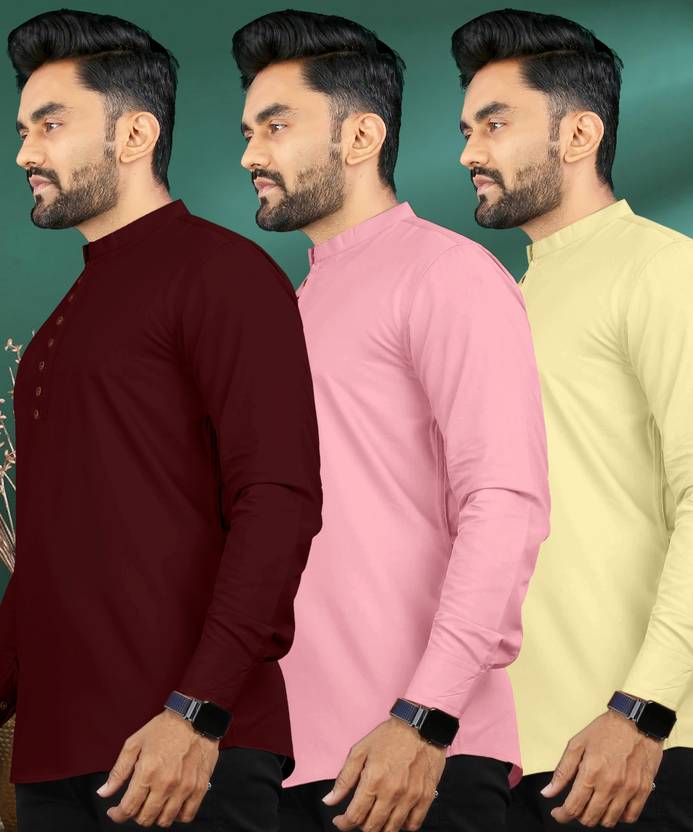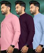 ISHQY Pack of 3 Men Solid Pure Cotton A-line Kurta (Multicolor)
