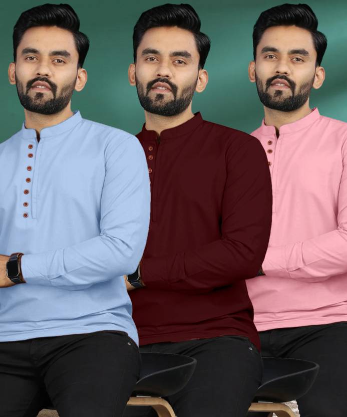 ISHQY Pack of 3 Men Solid Pure Cotton A-line Kurta (Multicolor)