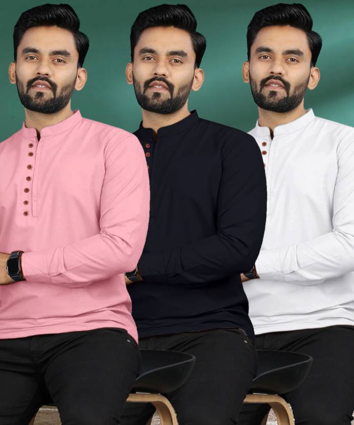 ISHQY Pack of 3 Men Solid Pure Cotton A-line Kurta (Multicolor)