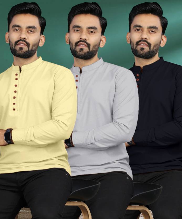 Pack of 3 Men Solid Pure Cotton A-line Kurta (Multicolor)