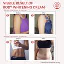 Experience the ultimate transformation with our revolutionary Body Whitening Cream. Our carefully crafted formula combines the best of nature and science to deliver exceptional results. This organic skin whitening cream is your solution for achieving a luminous, even complexion from head to toe. Our body whitening cream is not just another cream for body whitening; it's a comprehensive skincare solution designed to target dark spots, uneven tone, and dullness. Formulated with potent ingredients, this whitening cream penetrates deep into the skin, providing intensive nourishment and hydration. Say goodbye to uneven skin tone and hello to a brighter, more radiant complexion. Unlike other skin lightening creams for body, our formula is gentle yet effective, making it suitable for all skin types. Whether you have dry, oily, or sensitive skin, our cream for dark skin is your key to achieving the flawless complexion you've always dreamed of. With regular use, you'll notice visible improvements in skin tone and texture, leaving you with smoother, more even-looking skin. Our lightening cream for body is enriched with natural ingredients known for their skin-brightening properties.
