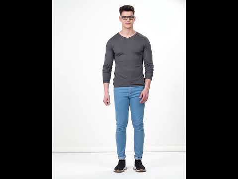 मार्क एंड स्पेन्सर पुरुषों के लिए कैज़ुअल सॉलिड ग्रे V नेक स्वेटर
