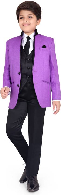 JACKJO Boys Boys 5PCS Coat Suit Set Purple Self Design Suit