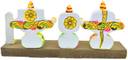 Jagannath World Sudarshan Chakra Blessings: Lord Jagannath Trio on Wooden Singhasana डेकोरेटिव शोपीस - 10 cm (सिरेमिक, बहुरंगी)