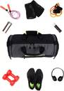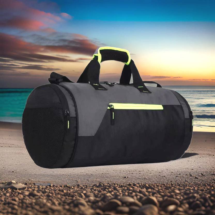 Material : Outer Material - Premium light weight Fabric, Inner Material – Soft Polyester, :Capacity : 23 Liters, 1 Large Double Zip Closure Compartment, 1 external Mesh Organizer Pocket for the earphones, ID card, Sanitizer, House keys, Fitness Band. 1 Main Compartment for all your Gym Clothes, Gym belt, towel, Gym gloves, shaker, shoe Pair etc., Design : Design with Premium Leatherette Heavy Quality Long Adjustable Handle and Double side easy carry handle., Manufacturing : This Product is made in INDIA By “The INDIAN KARIGAR “ and pass though the many quality checks and tests., Suitable : jairaj Gym Bag / Duffel bag is suitable for gym, Day trip casual round bag, travel bag is suitable for men women boys and Girls. This Bag is trending For Gift Purpose