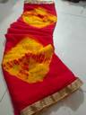 Embellished Bandhani Chiffon Saree (Red, Yellow)