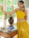 स्ले द स्टाइल गेम विथ जनस्याज मस्टर्ड जॉर्जेट लेहंगा चोली विथ दुपट्टा, ए श्योर थिंग टू हैव दिस फेस्टिव सीज़न. क्राफ्टेड एंटायरली फ्रॉम जॉर्जेट, दिस ग्लैमरस फिट इज़ लाइन्ड एंटायरली विथ बटर क्रेप. द नेकलाइन ऑफ द सॉलिड चोली इज़ स्क्वायर, शोल्डर स्ट्रैप्स आर एम्बेलिशड विथ गोटा पट्टी. द लेहंगा इज़ टायर्ड विथ गैदरिंग्स, फॉयल प्रिंटेड फ्लोरल्स ऑल ओवर इट. विथ द वेस्टबैंड एंड प्री-स्टिच्ड दुपट्टा बोथ एम्ब्रॉयडर्ड विथ बीड्स एंड सीक्वेंस, यू कैन स्ले दिस सीज़न वरी-फ्री.