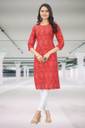 vriti fashion Women Printed Crepe Straight Kurta (Red)