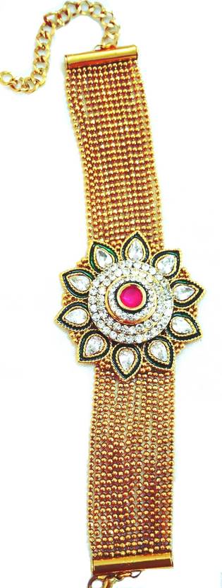 JDS GOLD PLATED FINISH STUDDED WITH KUNDAN AND STONE BRACELET.