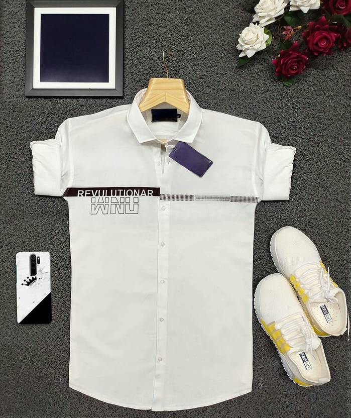 Men Regular Fit Solid Curved Collar Casual Shirt