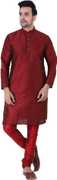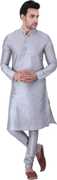 Tradition meets modern minimalism. This silk-blend set offers a sharp, structured silhouette with a lightweight feel that keeps you comfortable through long hours of celebration. The fabric's understated gloss provides a premium finish, making it a versatile choice for everything from office Diwali parties to family dinners. Experience the 'royal' look with none of the fuss.