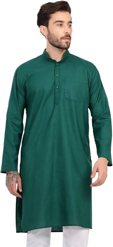 JEXI Men Solid Cotton Blend Straight Kurta (Green)