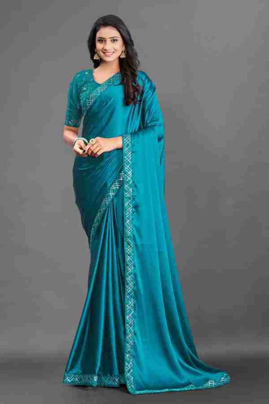 Solid/Plain Bollywood Satin Saree (Light Blue)